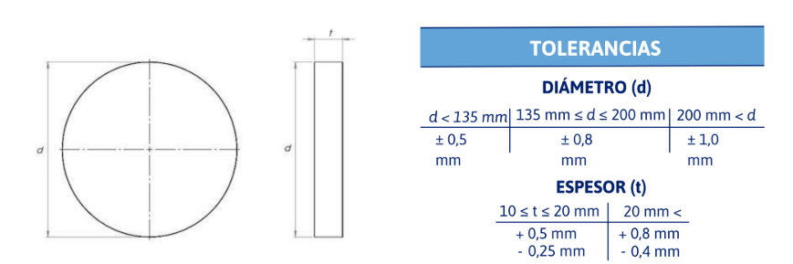 formas cuadradas, rectangulares y oblongas, con barrenos a requerimiento, formas cónicas